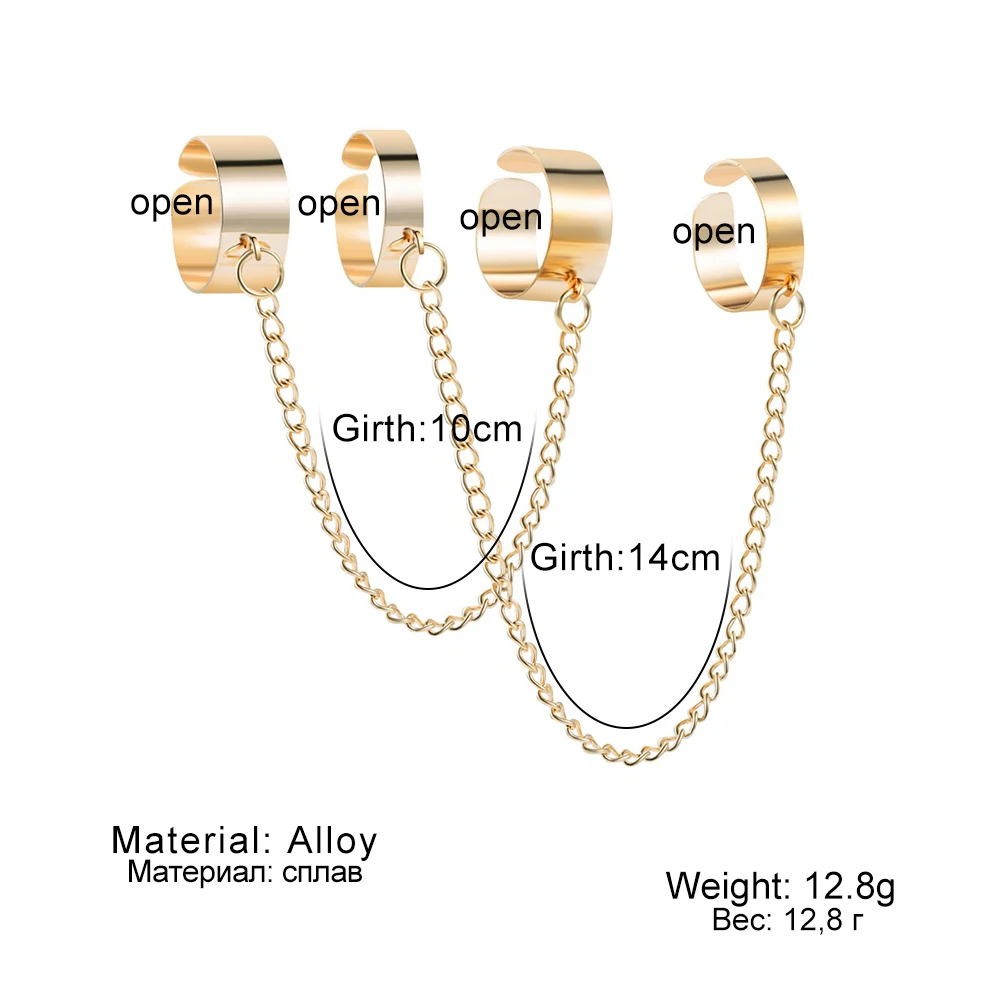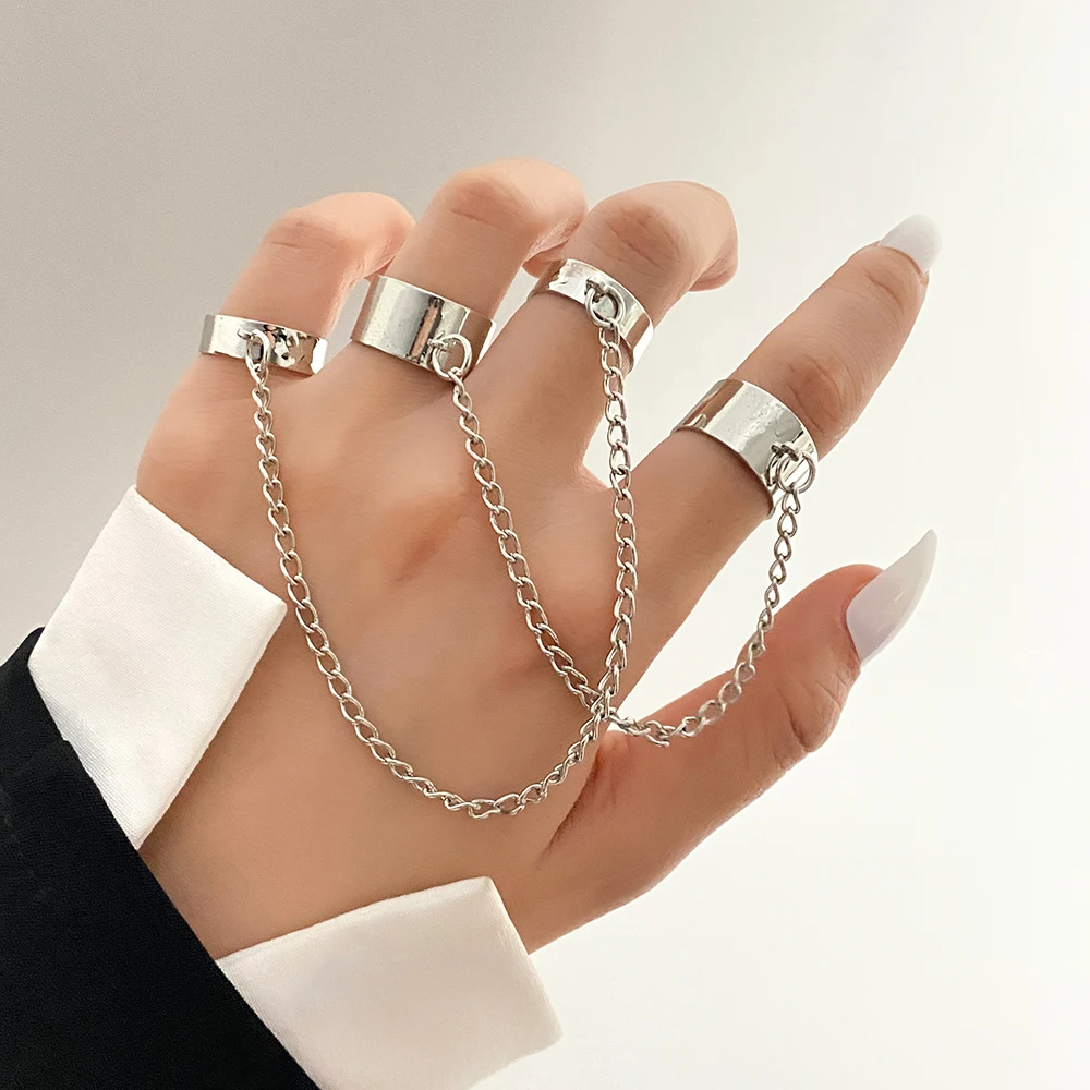 Кольцо в стиле панк, Крутое кольцо, регулируемая цепочка из четырех...