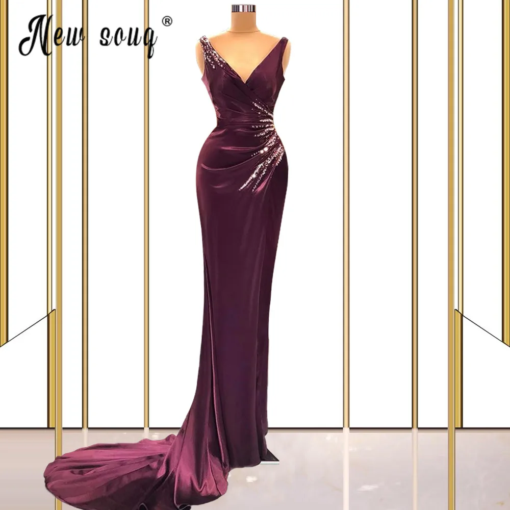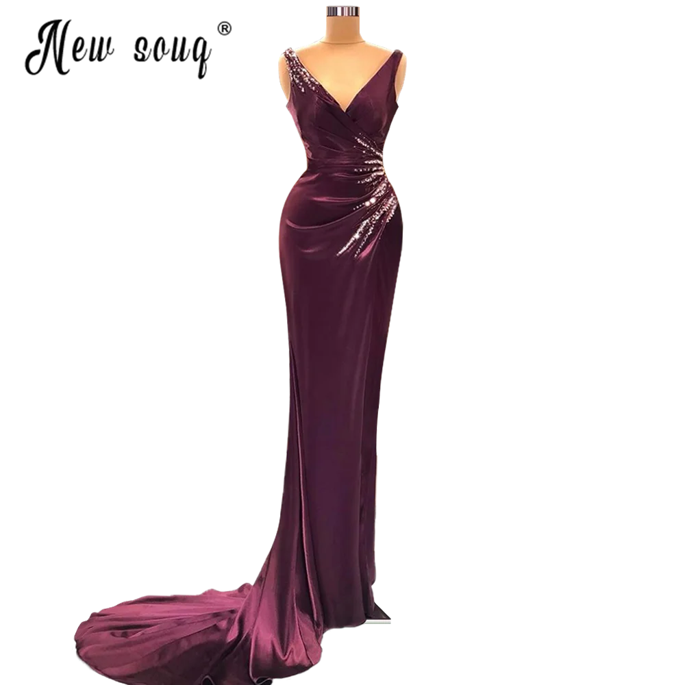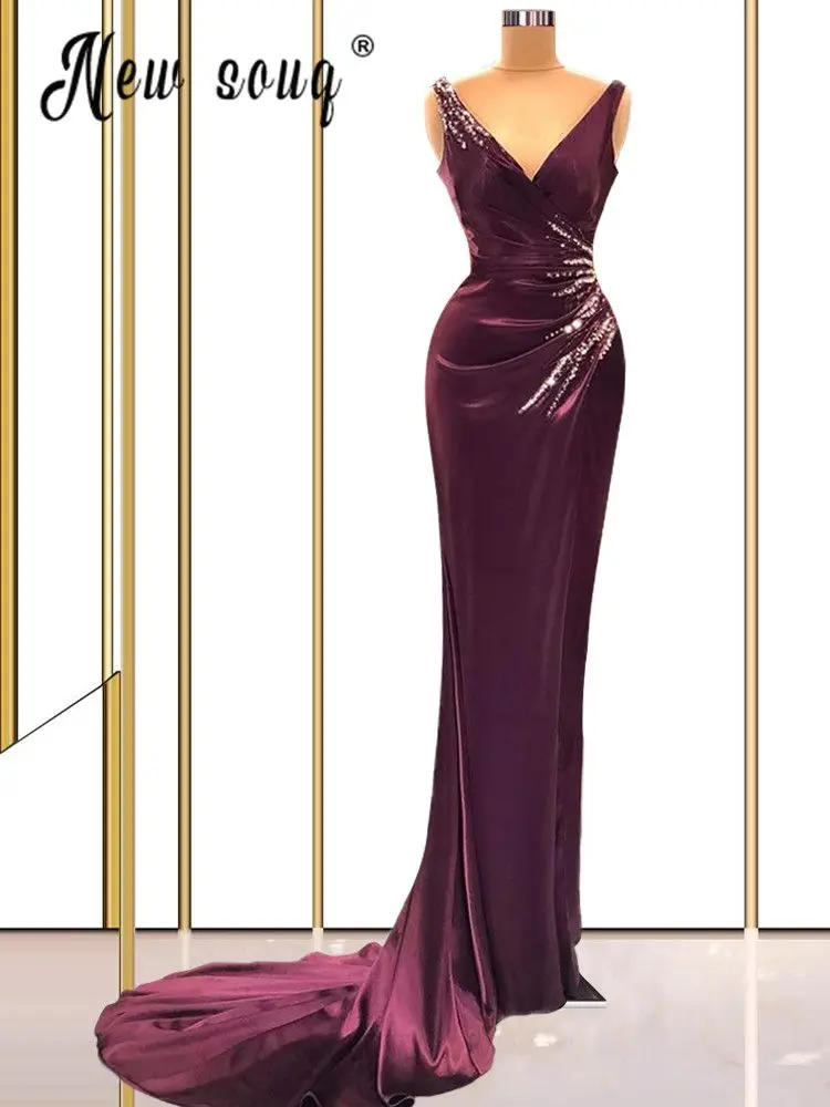 Вечернее платье-русалка без рукавов, с глубоким V-образным вырезом