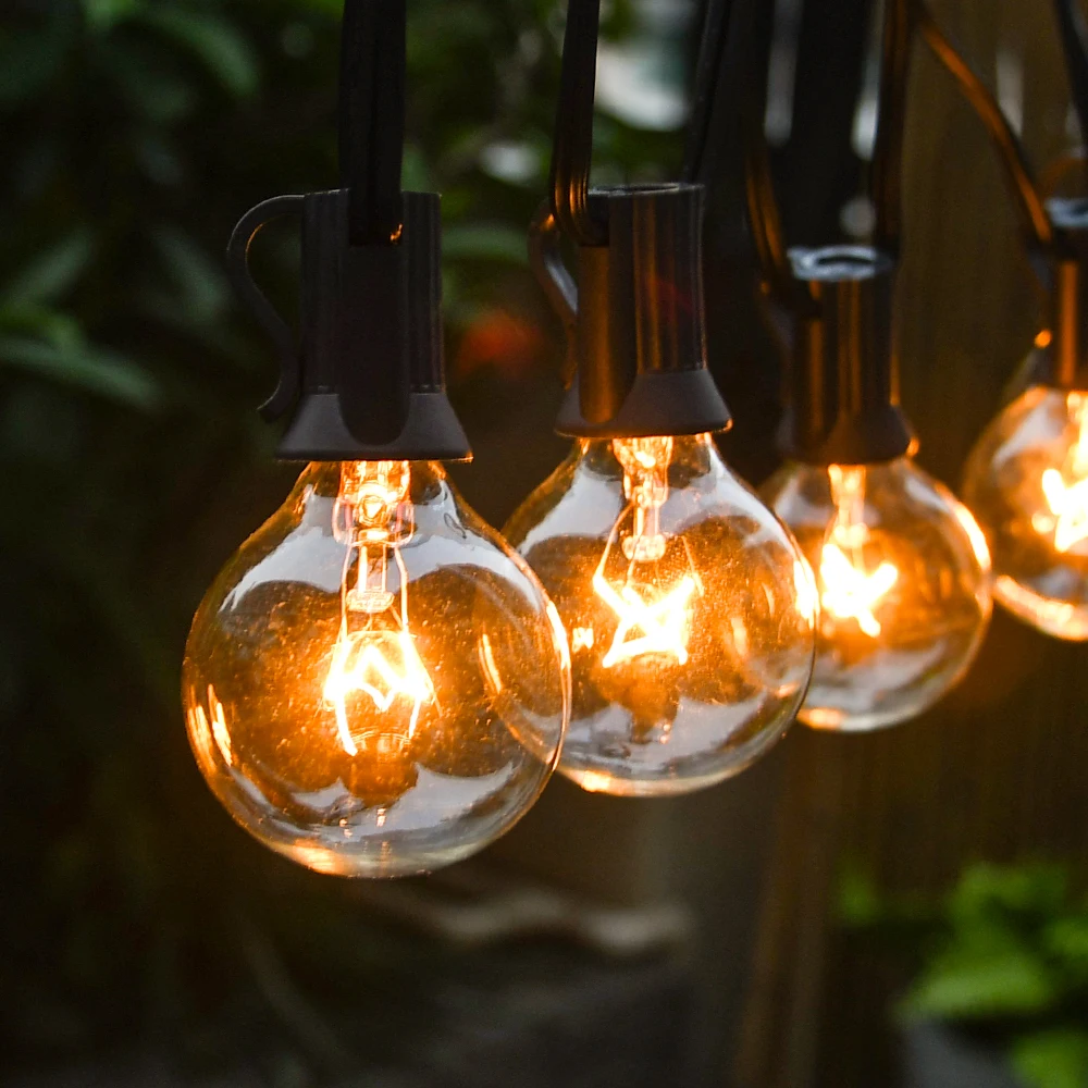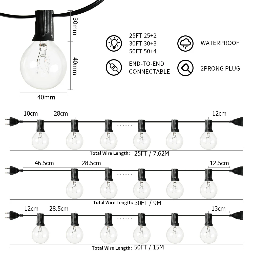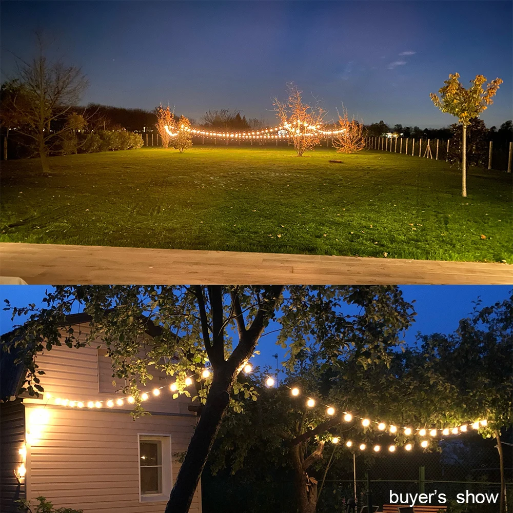 Гирлянда G40 с лампочками-шарами 30 футов, 50 футов, 30 стеклянных винтажных лампочек, уличная садовая гирлянда, декоративные сказочные рождественские огни