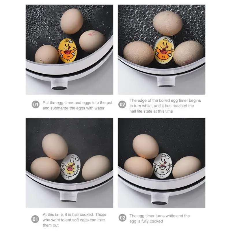 Gewoon zet het ei timer met uw ei in het water, we kunnen weten de conditie van uw ei als de timer kleur verandert, ei timer donkerder als eieren koken.