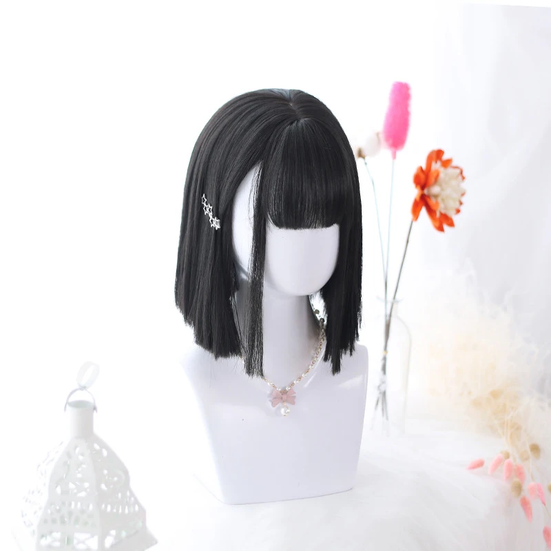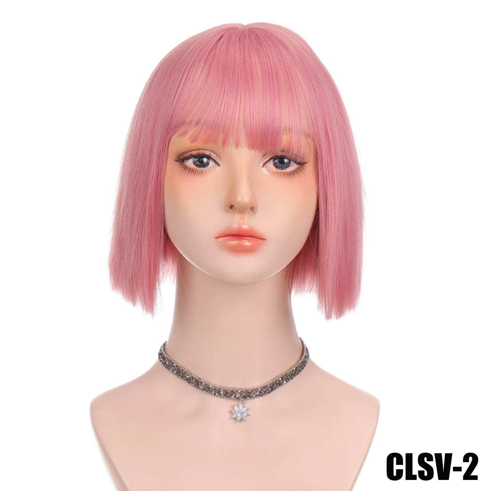 Синтетический короткий прямой парик Боб с челкой, имитация кожи головы, термостойкие черные, зеленые косплей аниме Лолита Парики для женщин