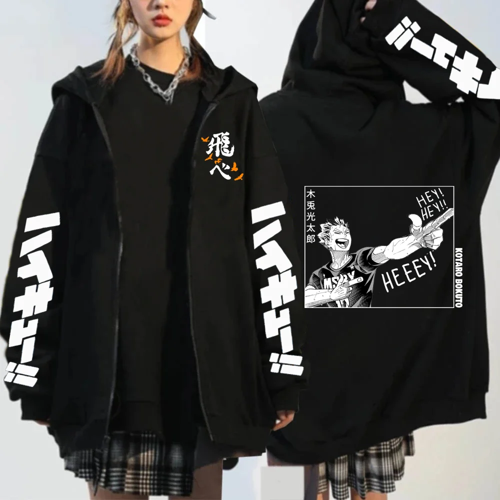 Толстовка Haikyuu мужская с капюшоном на молнии, аниме Bokuto Koutarou, толстовка с капюшоном в стиле манга Hey, Повседневная теплая Эстетическая винтажная мужская кофта