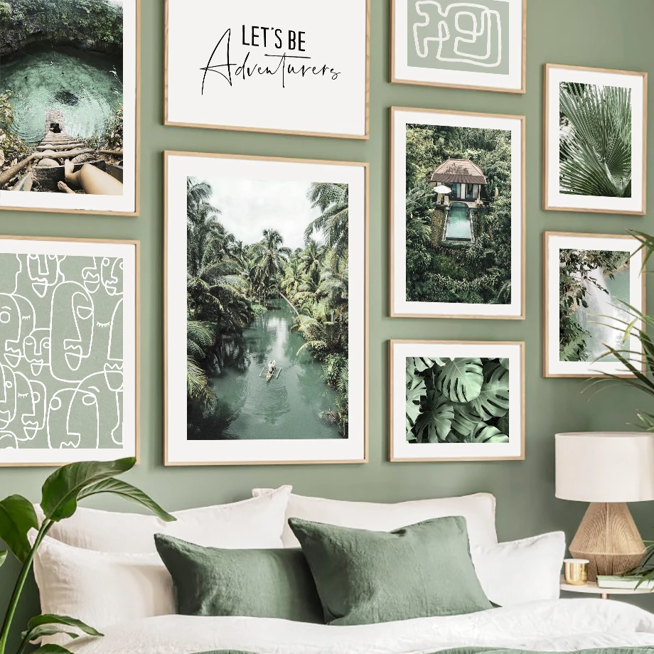 Картина на холсте с изображением банана, пальмы, зеленых растений