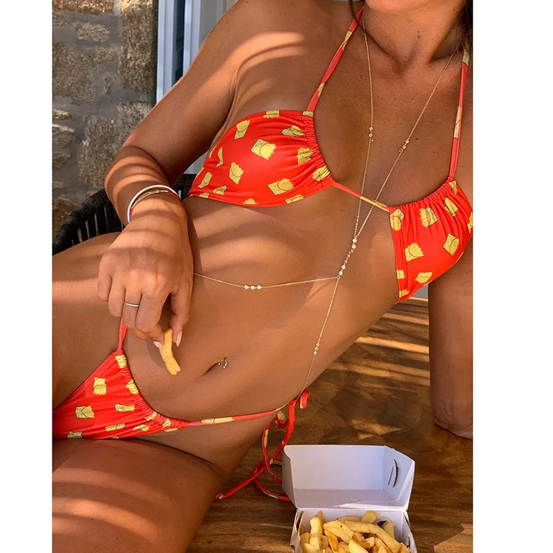 Купальник-бикини MYTENG женский с принтом фруктов, пикантный бразильский бандажный купальник с чашками пуш-ап, пляжная одежда