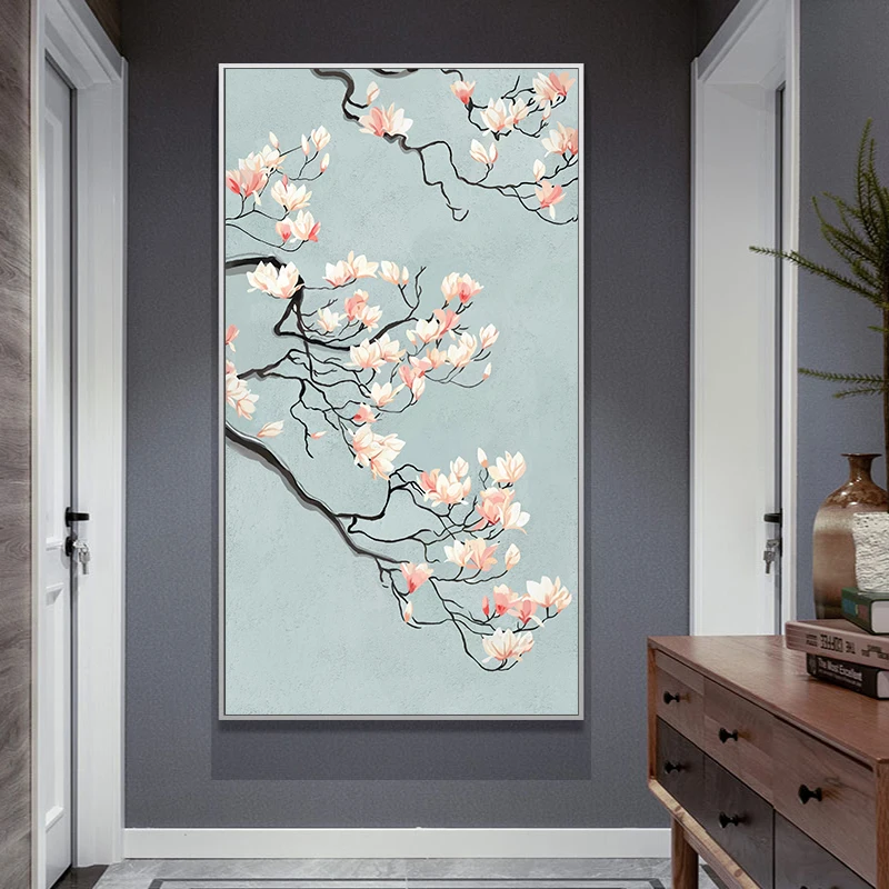 Китайский цветок сливы, абрикосовый цветок, лотос, холст, живопись, растение, пейзаж, плакат и печать, абстрактное искусство, роспись для гостиной