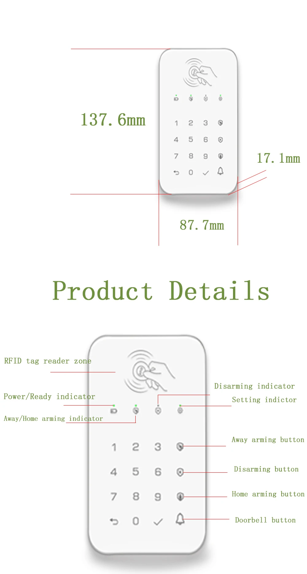 Беспроводной сенсорная клавиатура для PG103 PG106 PG107 W2B W3B W4B домашней безопасности WI-FI GSM сигнализация Системы RFID карты разоружить Беспроводная клавиатура на пароле