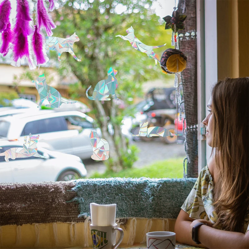 Электростатическая стеклянная наклейка, кошка, колибри, фотопленка для окон