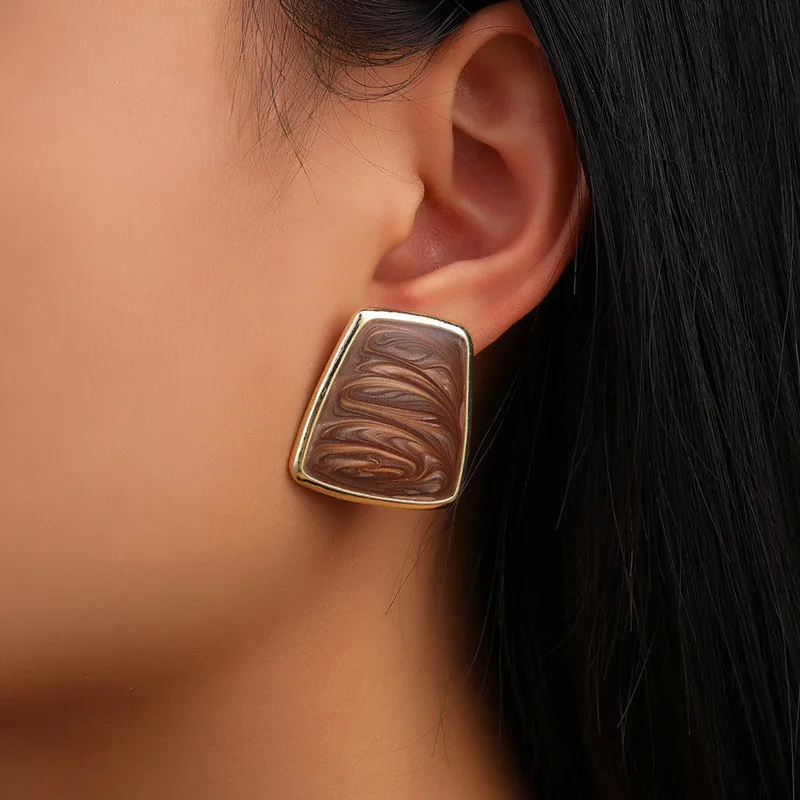 Крупные трапециевидные женские серьги-гвоздики красочные полосатые геометрические Эффектные серьги для девочек 2022 трендовые серьги ухо для женщин