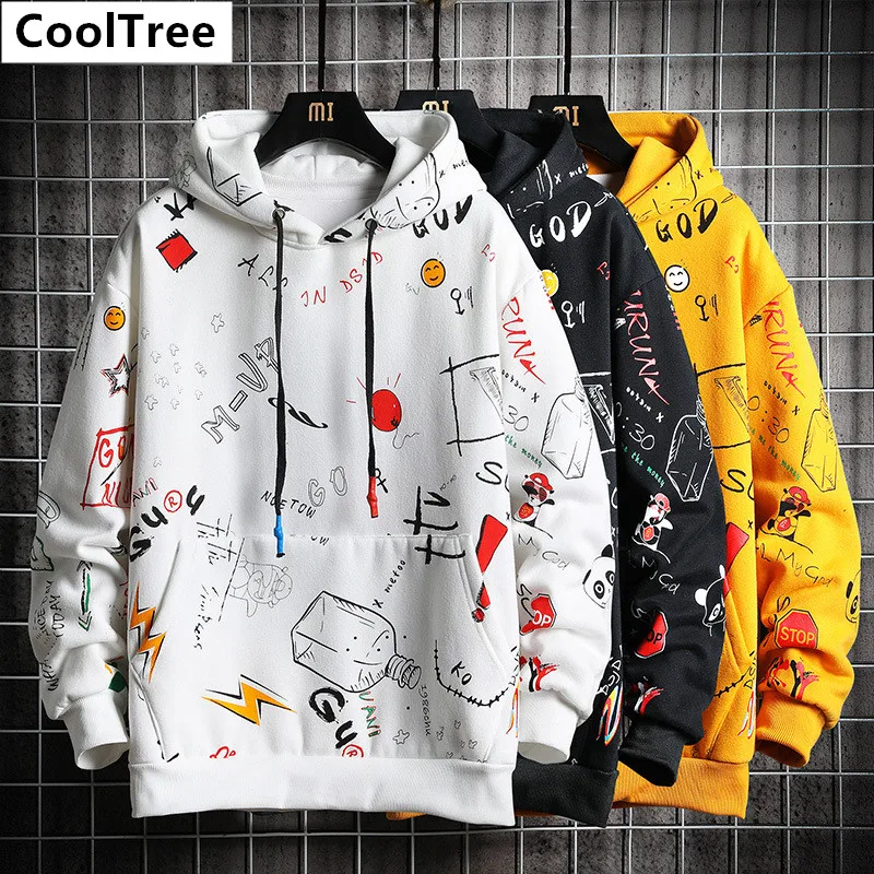 Мужские толстовки CoolTree в стиле аниме, весенне-осенний Модный свитшот с капюшоном и принтом граффити, мужской пуловер большого размера в стиле Харадзюку, хип-хоп