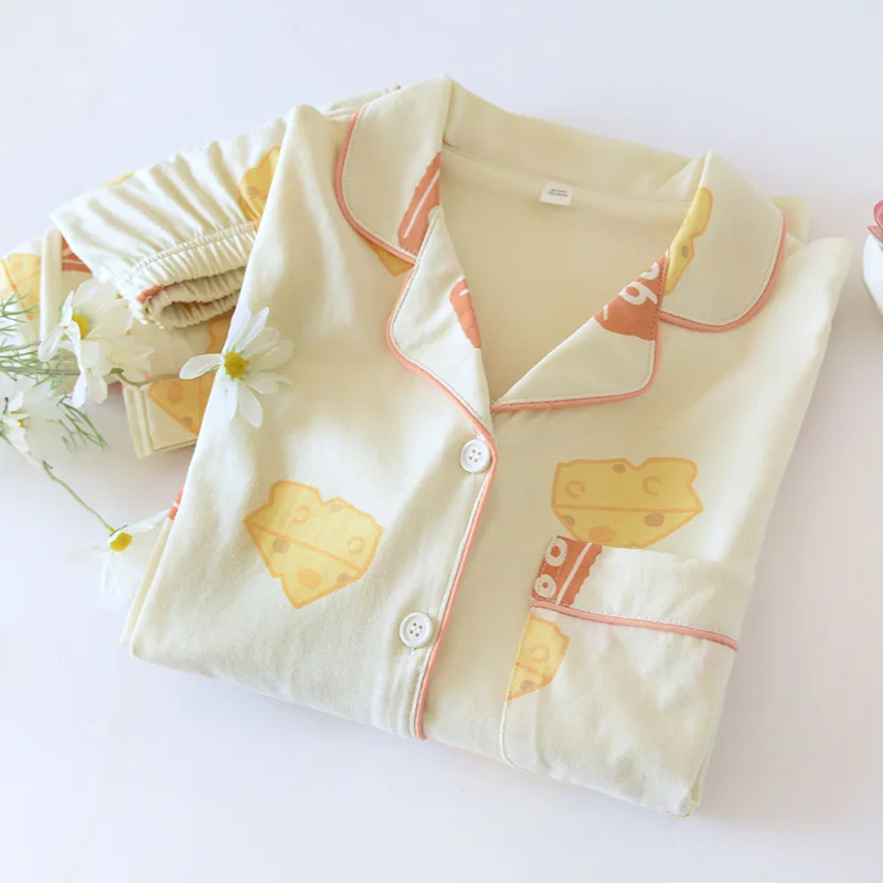 Женский костюм весна-лето 2022, хлопковая вискозная Пижама, брюки с длинным рукавом, одежда для сна, одежда для девочек с персиковым принтом, домашний комплект для отдыха