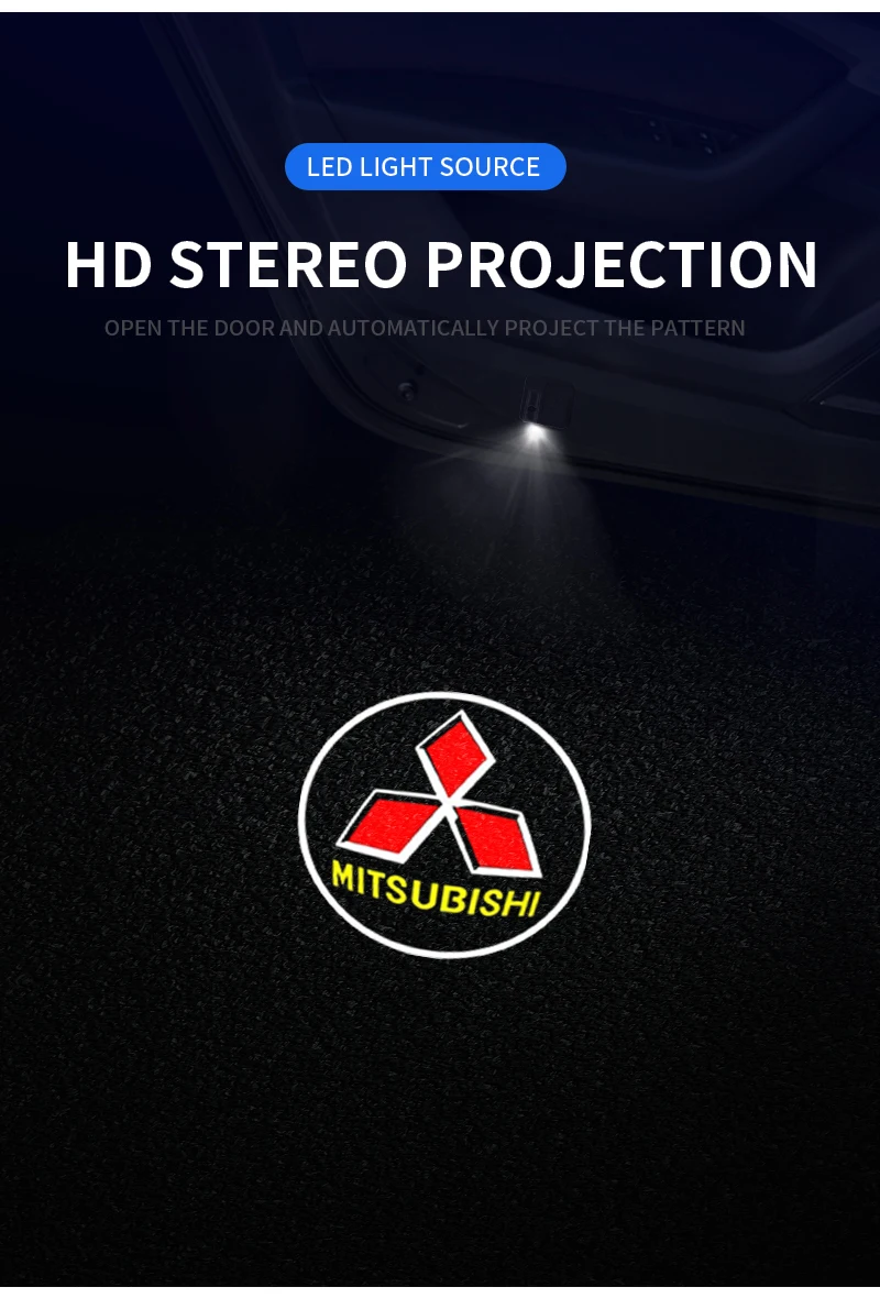 Светодиодный светильник для двери автомобиля, Лазерная лампа с логотипом для Mitsubishi Asx Lancer Pajero 4 Outlander 3 Xl l200 EX10 X Colt Pajero