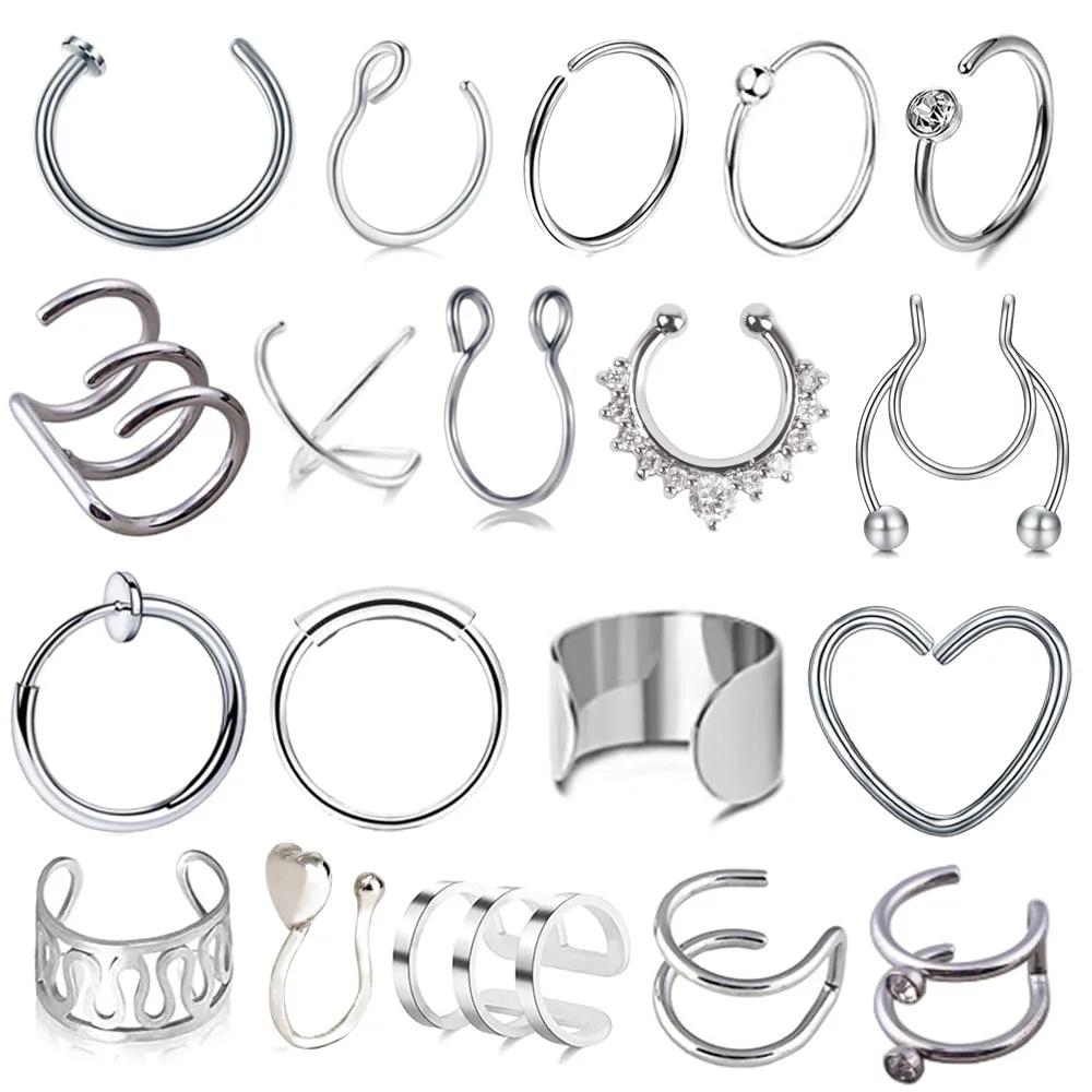 Кольца для носа с имитацией пирсинга, 20 г, клипса для носа, хирург...