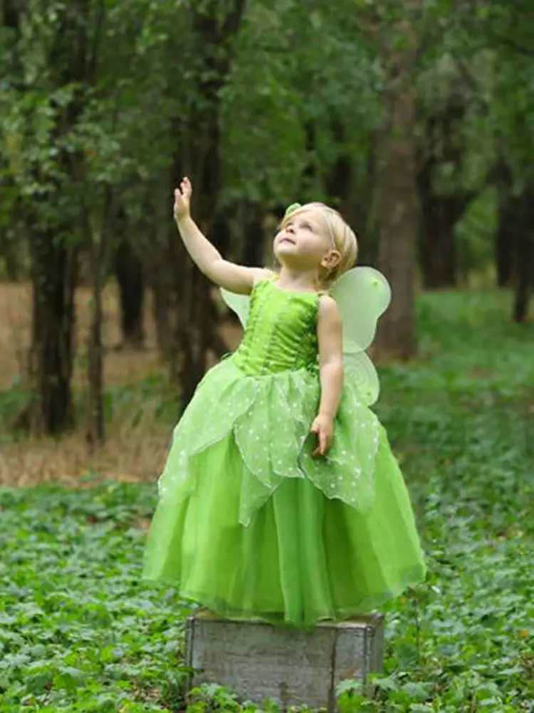 Костюм принцессы с крыльями фея Динь-Динь, зеленый, для Хэллоуина