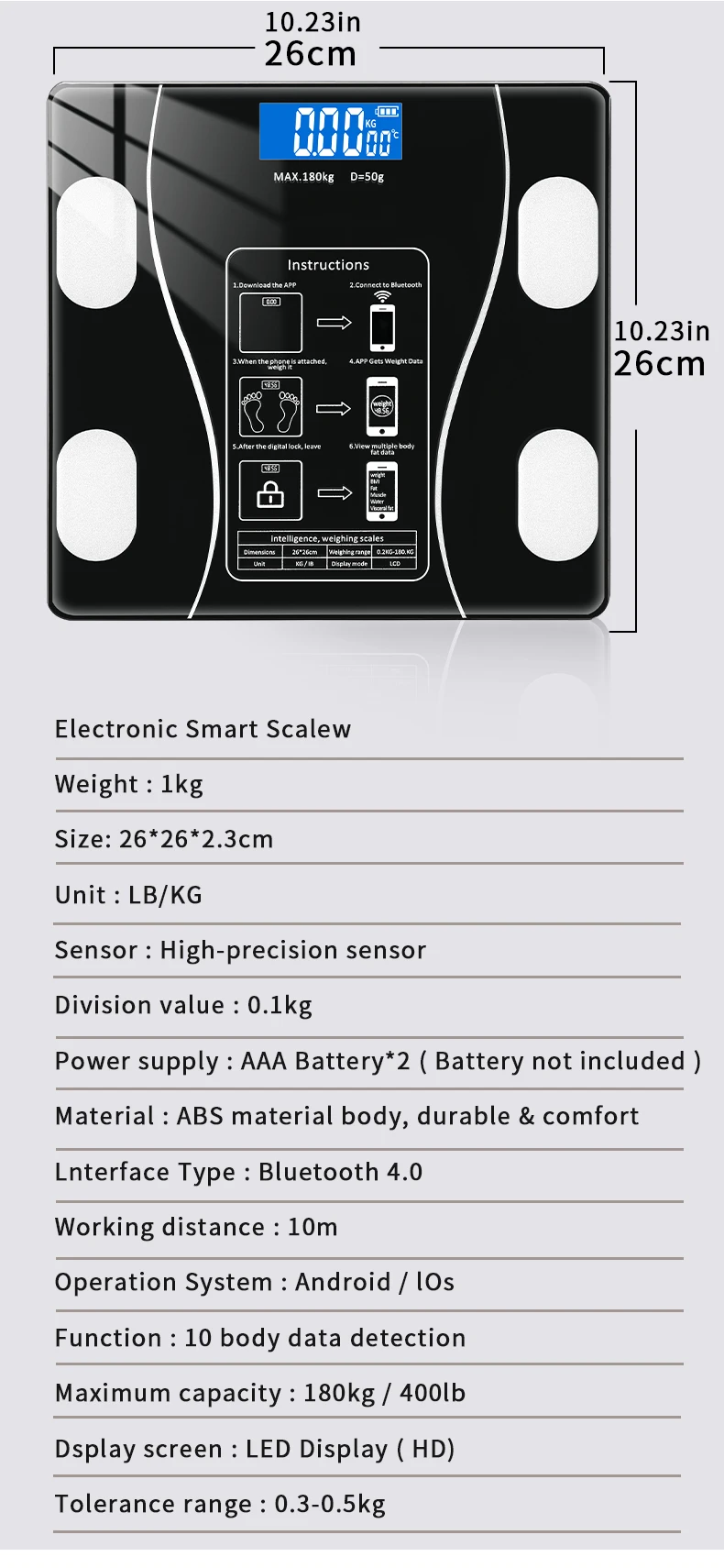 Электронные весы для ванной комнаты с Bluetooth, BMI, мониторинг здоровья, цифровые весы, светодиодный дисплей, закаленное стекло, точный монитор веса