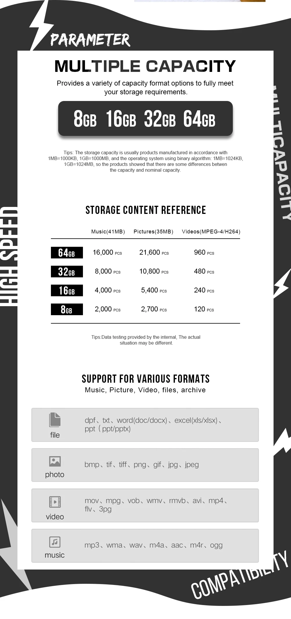 1. Подключение USB, поддержка горячего подключения и воспроизведения.2. Нет внешнего источника питания.3. Поддержка различных типов ОС.4. Твердотельный накопитель, ударопрочный и электромагнитный.5. Надежное хранение данных6. Быстрая скорость записи/чтения7. Требования к оборудованию: ПК с USB подключением, ноутбук, MAC8. Емкость: 8 ГБ/16 ГБ/32 ГБ/64 Гб/128 ГБ