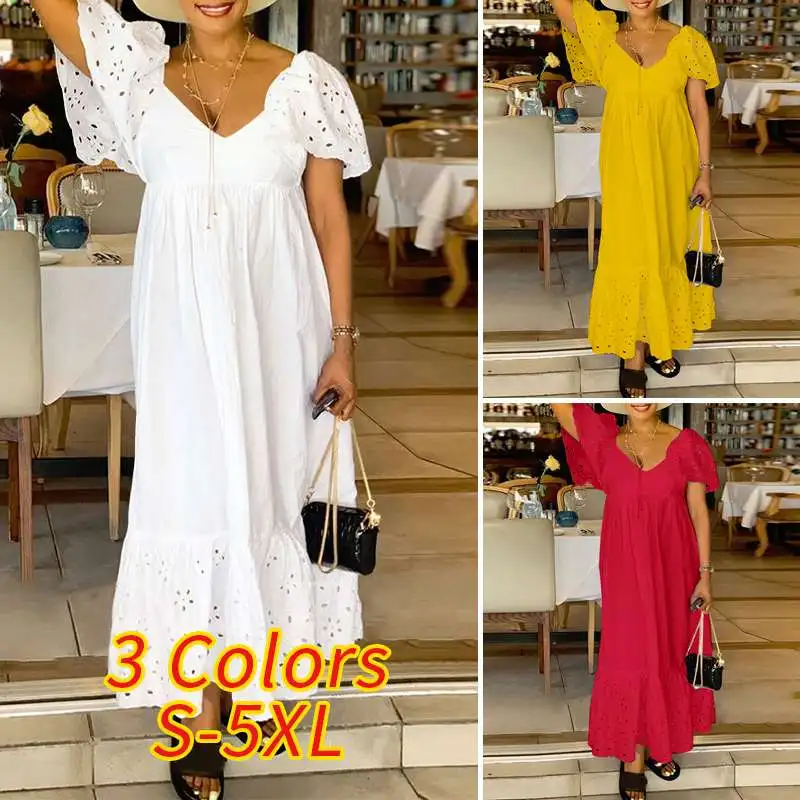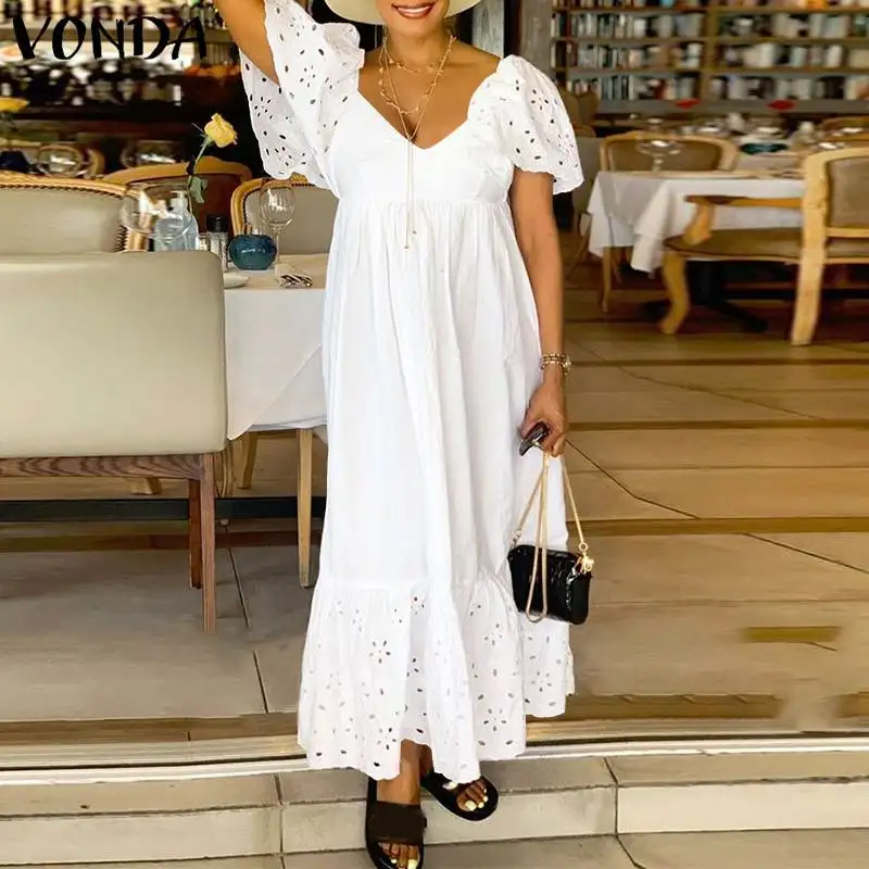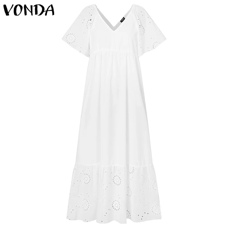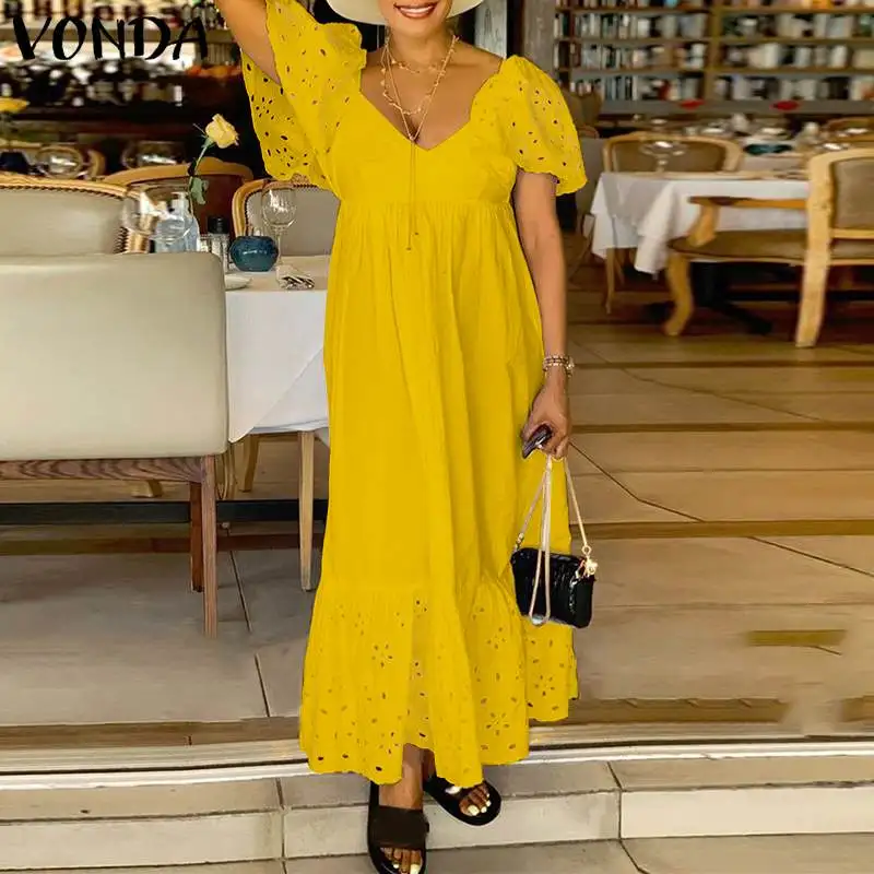 Платье VONDA женское летнее с V-образным вырезом, пикантный Однотонный сарафан до середины икры в стиле пэчворк, повседневвечерние вечернее, праздничное, оверсайз, 2022