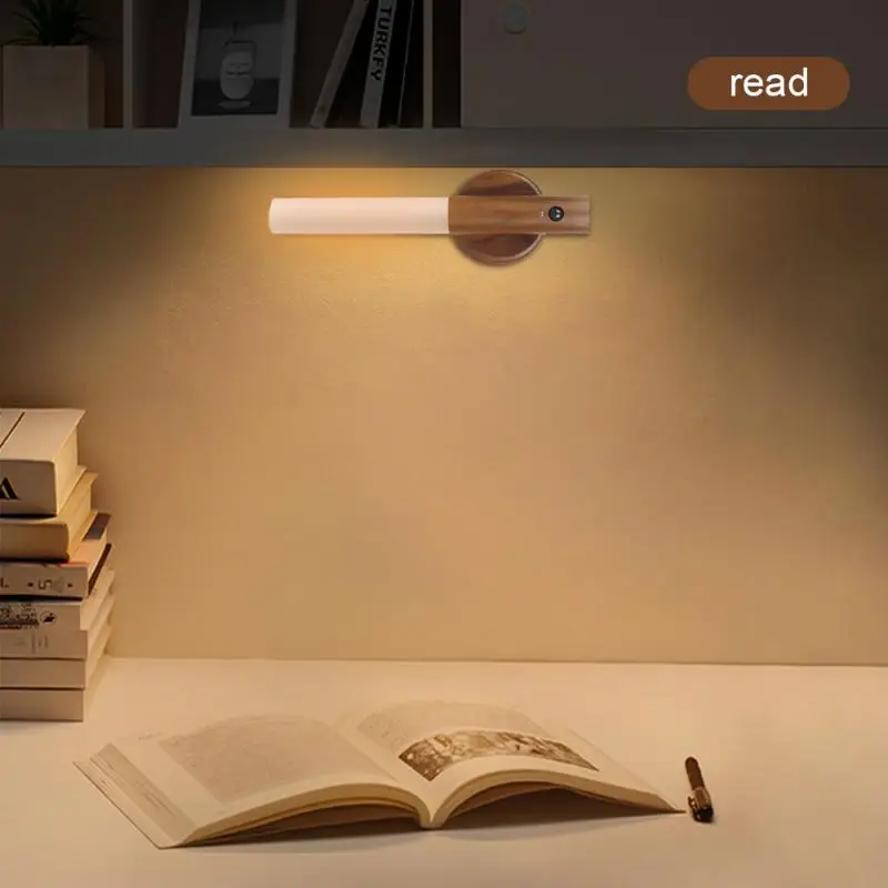 Деревянная Светодиодная лампа с умным датчиком, настенный светильни...