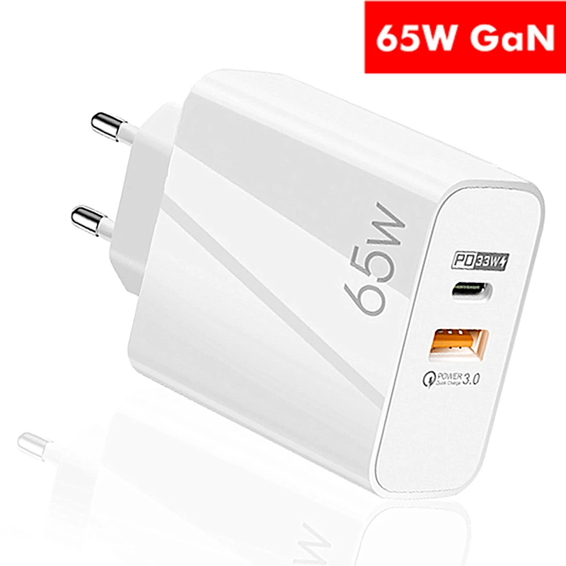 Зарядное устройство GaN с двумя портами, 65 Вт, 33 Вт, QC 3,0 PD