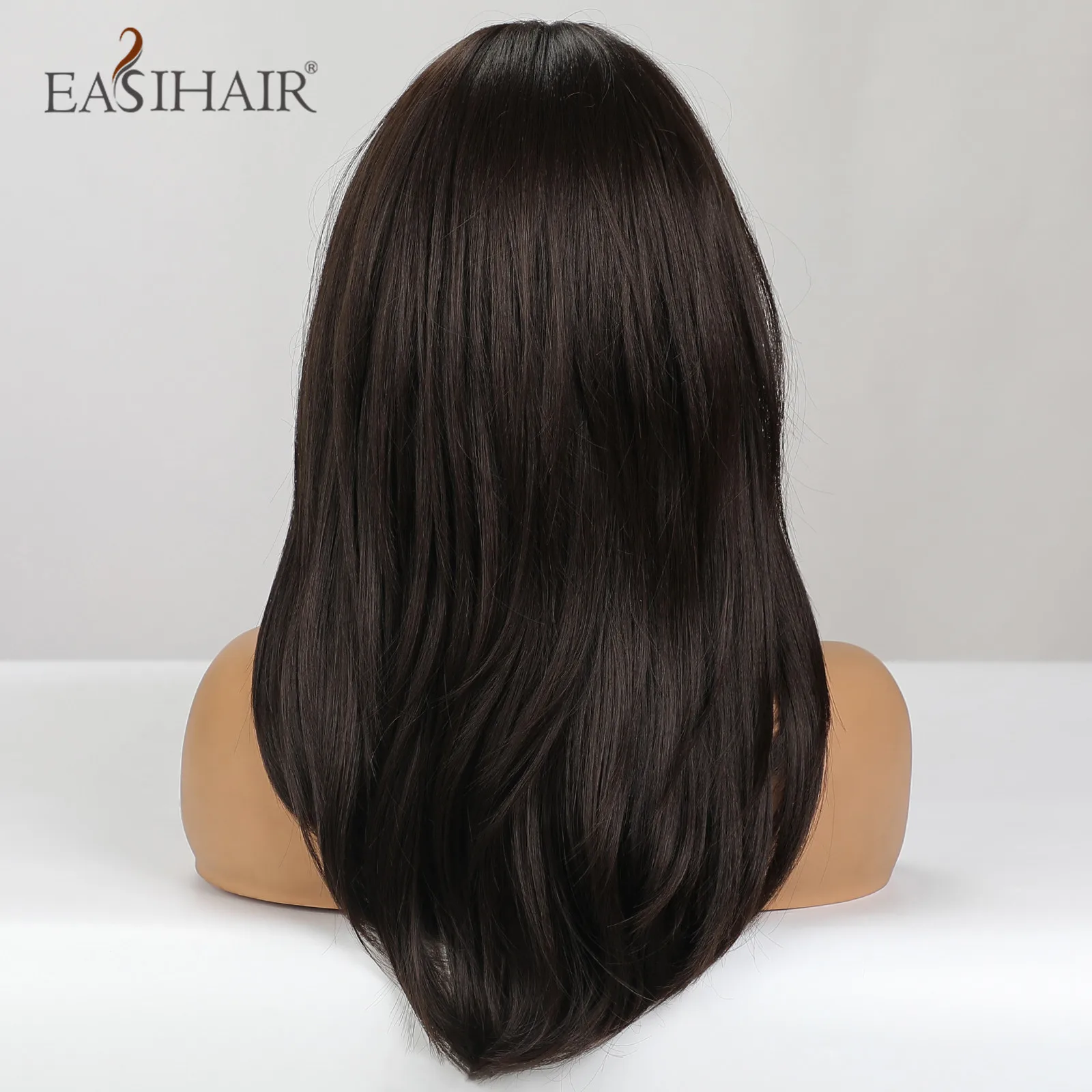 Длинные темно-коричневые черные прямые синтетические парики EASIHAIR, многослойные натуральные волосы для женщин, повседневные, вечерние, для косплея, Термостойкое волокно