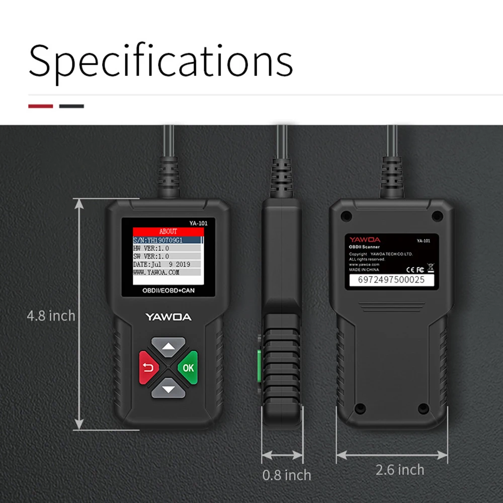 Встроенный монитор, диагностический сканер YA101 OBD2, новый автомобильный считыватель кодов OBD2 EOBD для проверки освесветильник двигателя, датчик О2, тестер EVAP