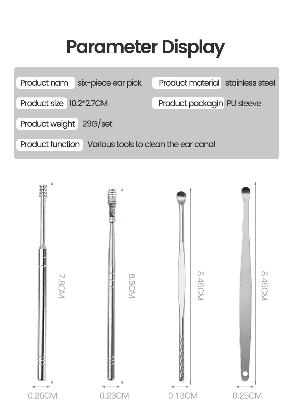 Портативная коробка для хранения:Наш набор для чистки ушей поставляется с портативной сумкой из искусственной кожи. Вы можете легко взять этот набор для удаления ушного воска. Наш набор для удаления ушного воска также станет отличным подарком для вашей семьи и ваших друзей.