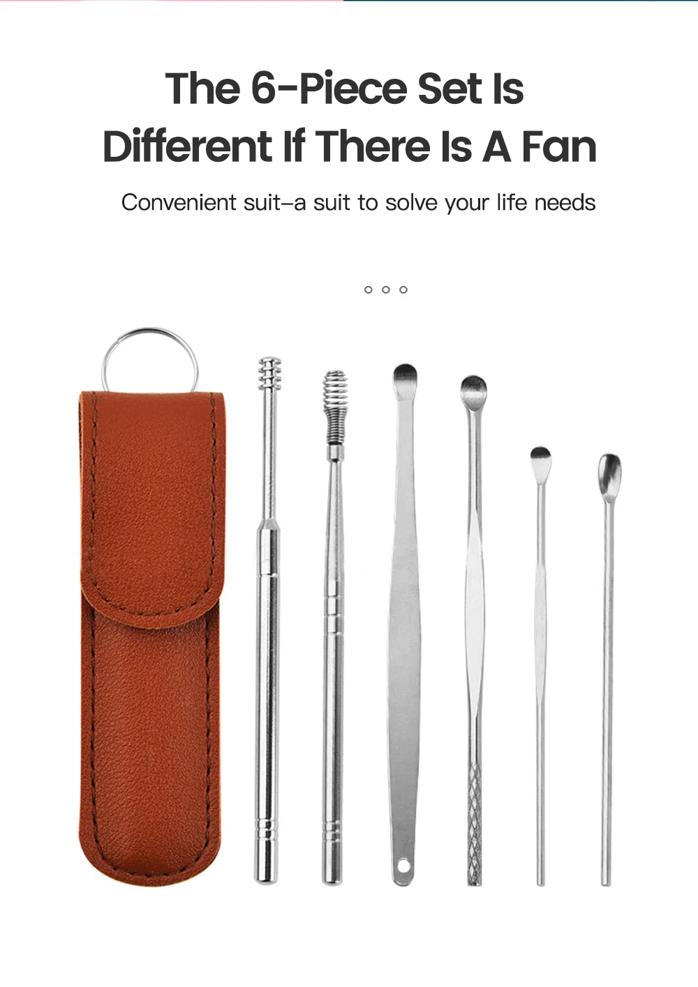 6 шт. Очиститель для ушей, инструмент для удаления воска, палочки для удаления ушной серы, кюретка для удаления ушной серы, чистящее средство для ушей, ложка, уход за здоровьем, Earpick
