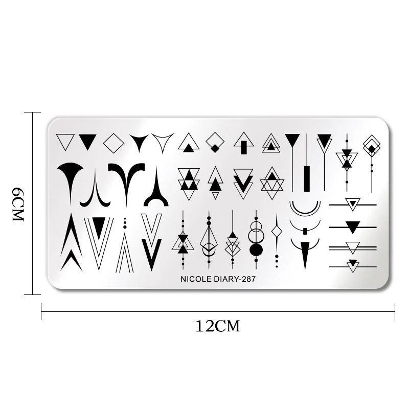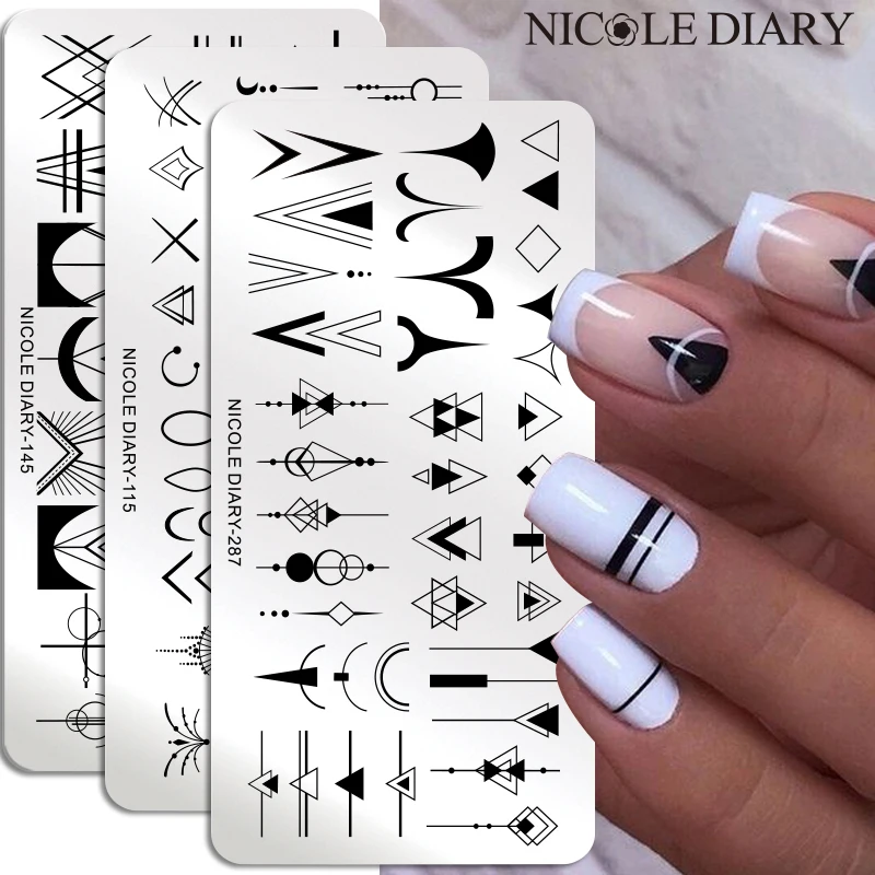Трафареты NICOLE DIARY геометрические для ногтей, штамповочные пластины французского геометрического дизайна, для ногтей, пальмовых листьев, цветов