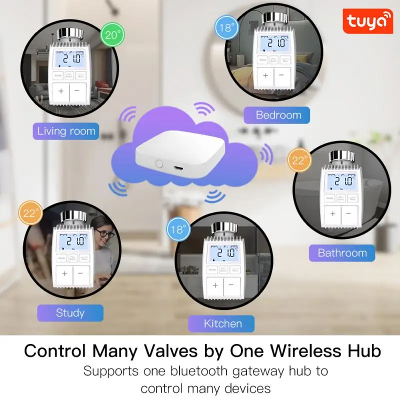 2. Беспроводной шлюз Tuya ZigBee /Bluetooth должен: Беспроводной концентратор ZigBee /Bluetooth является обязательством, которое подключается к клапану многих других умных продуктов ZigBee и реализует всю связь ваших устройств smart home. Просто добавьте свой шлюз к Приложение, затем добавьте привод радиатора к вашему шлюзу в приложение Smart Life, даже интеллектуальную автоматизацию к другим смарт-устройствам в приложении, создав различные сцены для гибкого управления на смартфонах.