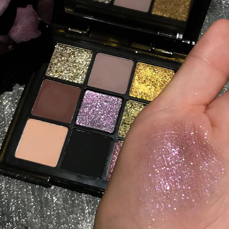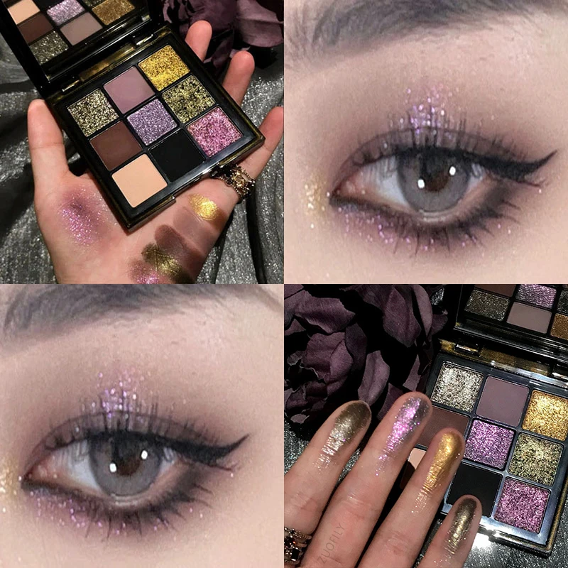 Палетка фиолетовых и золотых теней для век, 9 цветов, черная Палетк...