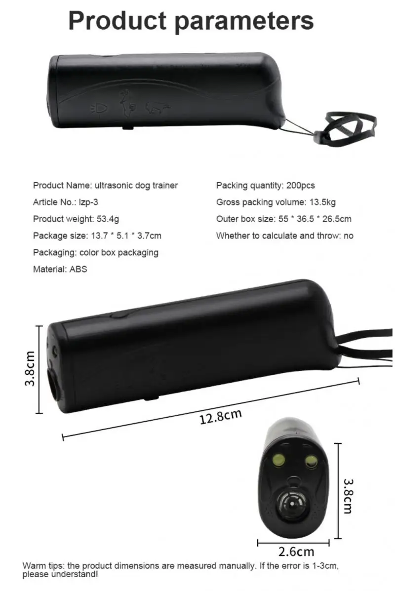 Ультразвуковой отпугиватель собак, антилай для собак, тренажер для тренировки 3 в 1, светодиодный, дрессировка, без аккумулятора