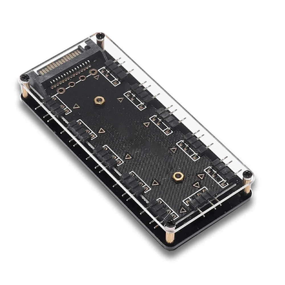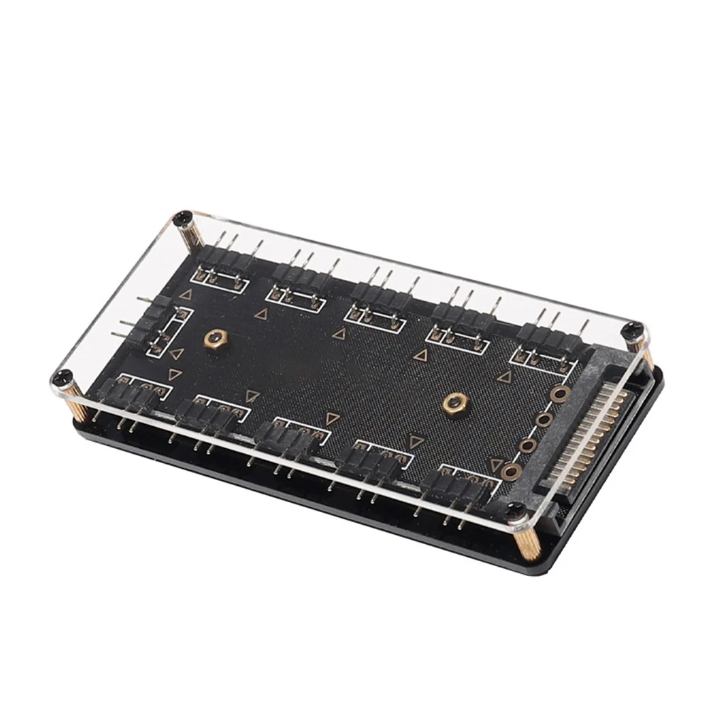 Кулеры для ПК Gigabyte MSI ASUS, 10-портовый RGB-вентилятор, хаб для настольного ПК, SATA Power, 5 В, 3PIN, акриловая плата