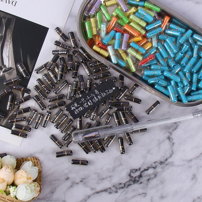 Название: 55/110 шт./упак. мини выражение капсулы для сообщенийРазмеры: 2*0,6 смМатериал: пластикПримечание: черная бумага требует особого цвета.Капсула не может прикоснуться к воде, она расплавится