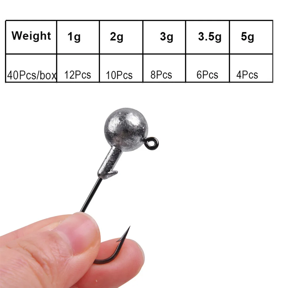 Свинцовые джиг-головки 40 шт., рыболовные крючки, круглый шар, крен...