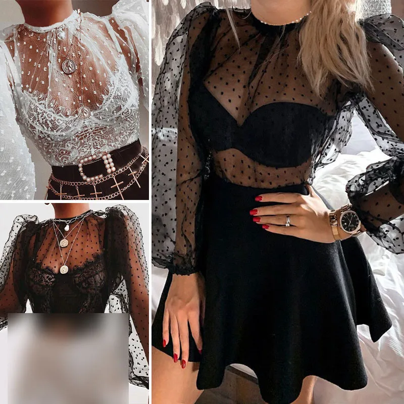 Женская прозрачная блузка в горошек, сетчатая прозрачная блузка с д...