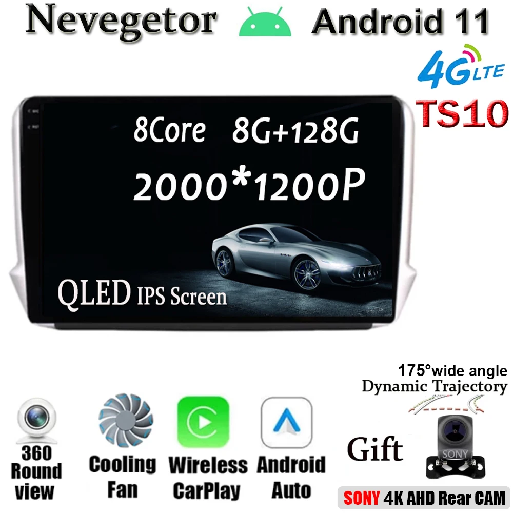Автомагнитола 2 Din, Android 11, мультимедиа, стерео, GPS-навигация, 4G, Wi-Fi, DSP-навигация для Peugeot 208, 2008, 2014-2018, без DVD-плеера