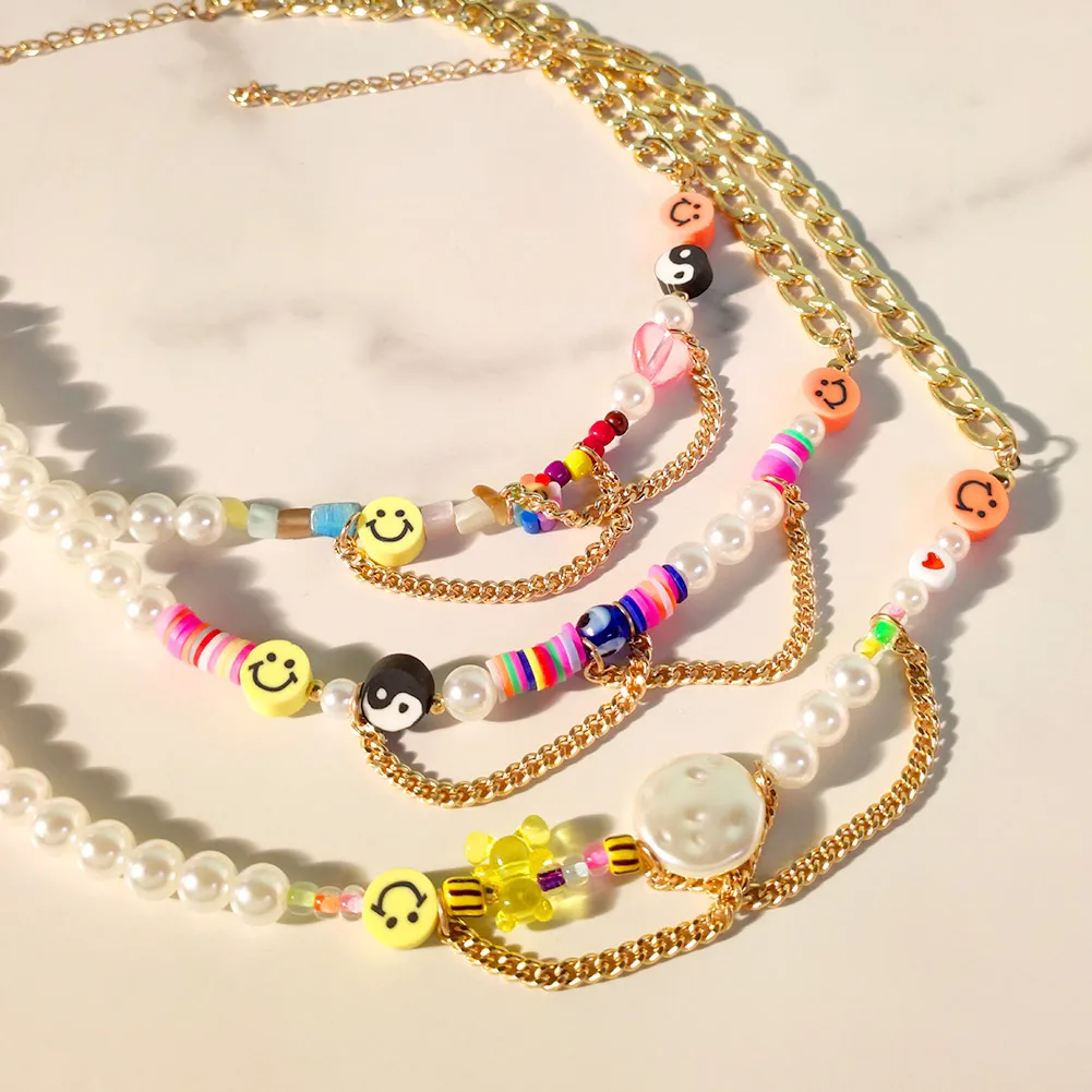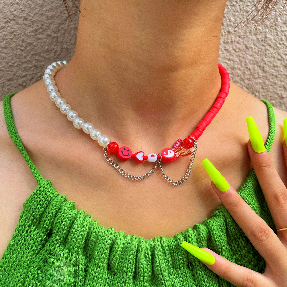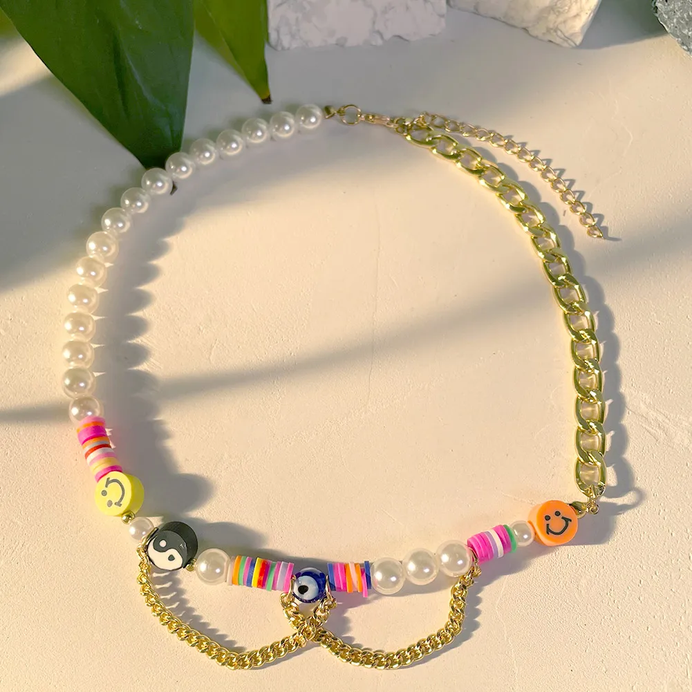 Асимметричное жемчужное ожерелье в стиле Харадзюку с бабочкой-смайликом для женщин ожерелье из разноцветной глины чокер в богемном стиле Kpop Y2K ювелирные изделия аксессуары