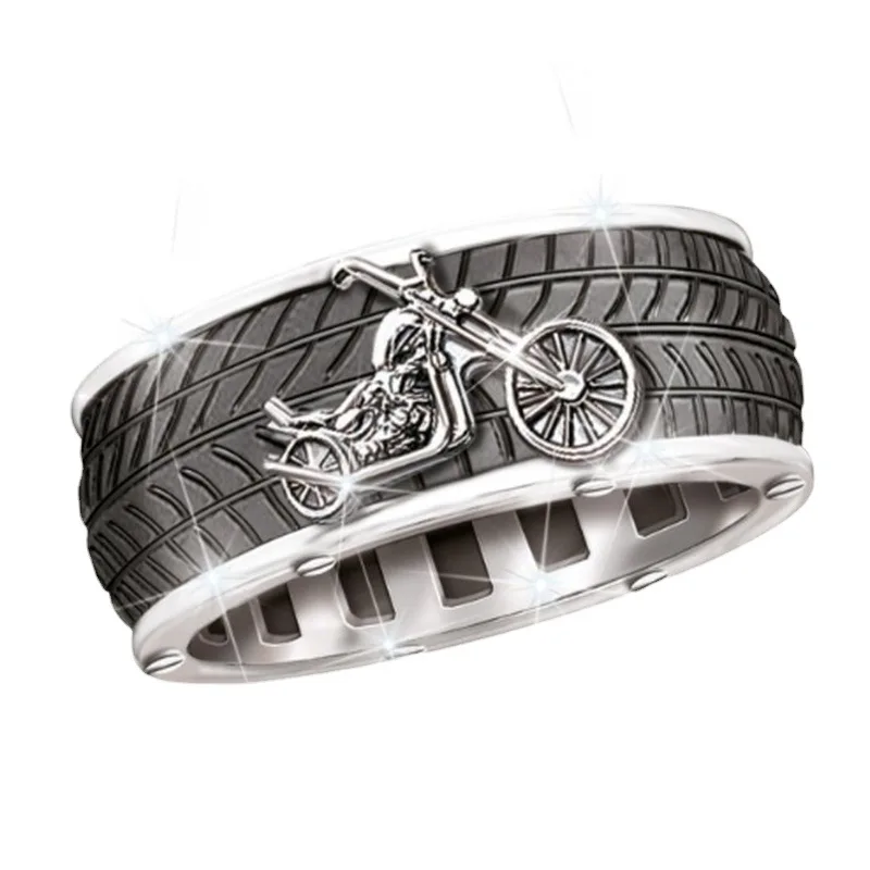 Мужское кольцо в стиле панк с текстурой в виде шины