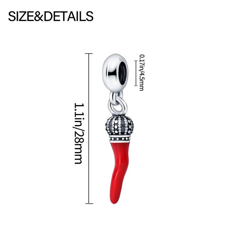 Бусина-Шарм красный чили из серебра 925 пробы для браслета Pandora