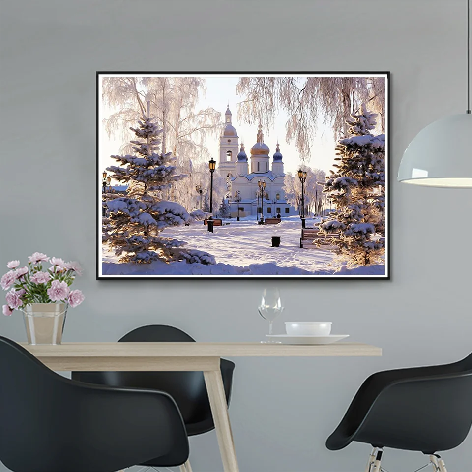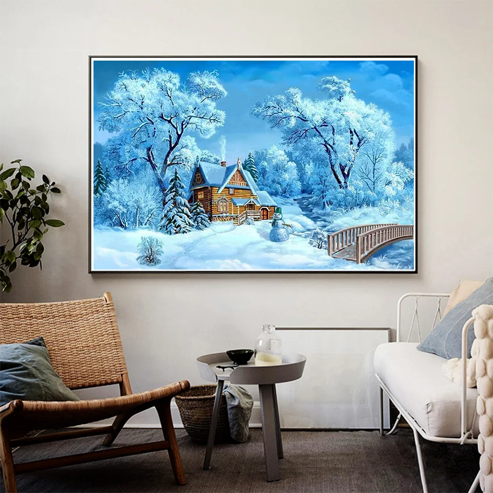 Алмазная живопись с пейзажем сделай сам, зимний Снежный пейзаж, полная вышивка, мозаика из страз, вышивка крестиком на дереве и реке, домашний декор