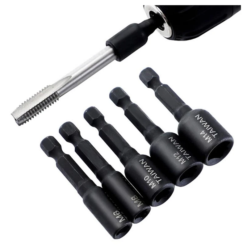 7 шт.компл. переходник для отвертки 14 "с шестигранным хвостовиком, квадратный переходник с резьбой для M4 M5 M6 M8 M10 M12 M14, кран для станка