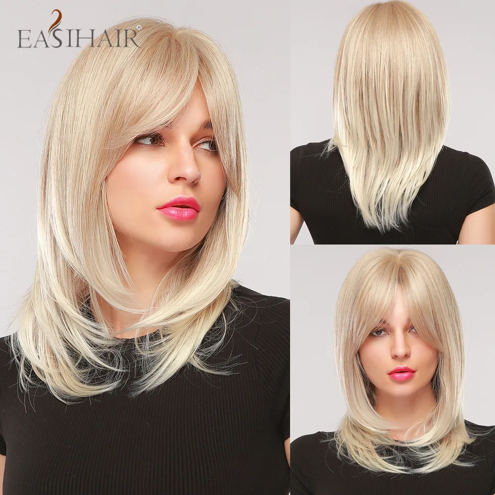 EASIHAIR, парики с золотым Бобом, короткие прямые, коричневые, натуральные синтетические волосы для женщин, повседневные, косплей, термостойкие волокна, парики