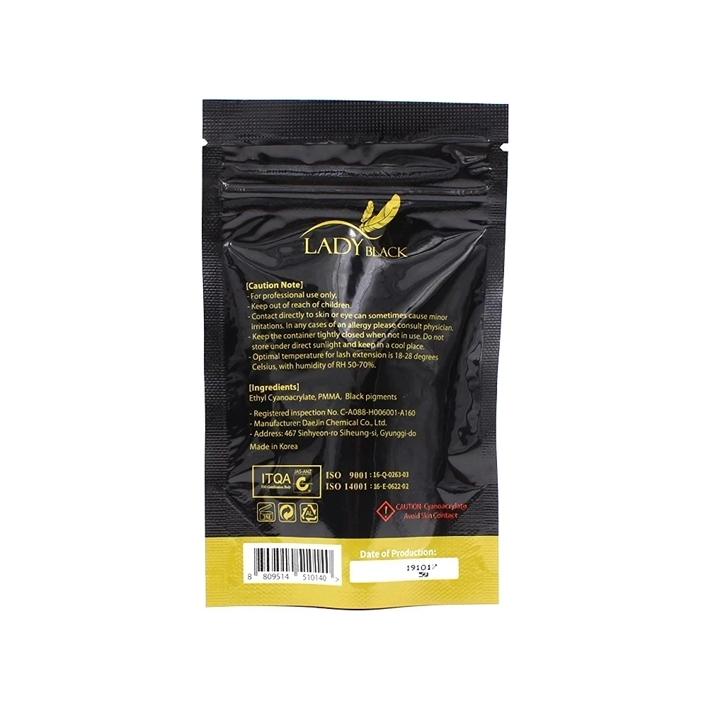 Особенности:* Lady Black-сертифицированный клей KC для наращивания ресниц.* Время сушки клея быстрее и чувствительность раздражения исчезла без улучшенного продукта. Профессионалы с быстрыми и точными руками полюбят этот клей!* Женский черный клей имеет низкое раздражение, но остается более 4 недель, как и другой сильный раздраженный клей. Уменьшая вязкость делает клей гибким без каких-либо трещин.