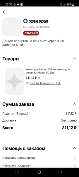 Заказывал дважды. Фото прилагаю. В первый раз продавец сам отменил заказ и деньги не вернул. Алишка то же не реагирует хоть и фото доказательства отправил, что ничего не получил. На сообщения продавец отписывается стандартными фразами. Заказал второй раз - подарок девушке и в другом месте не было такого же цвета. Пришло. В целом продавцом не доволен. Не рекомендую. Покупайте если готовы потерять деньги и время. Девушка в день рождения осталась без подарка(телефон лежал пока чехол не приехал). Получила его через почти 2 месяца.