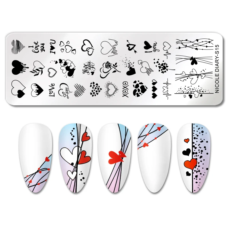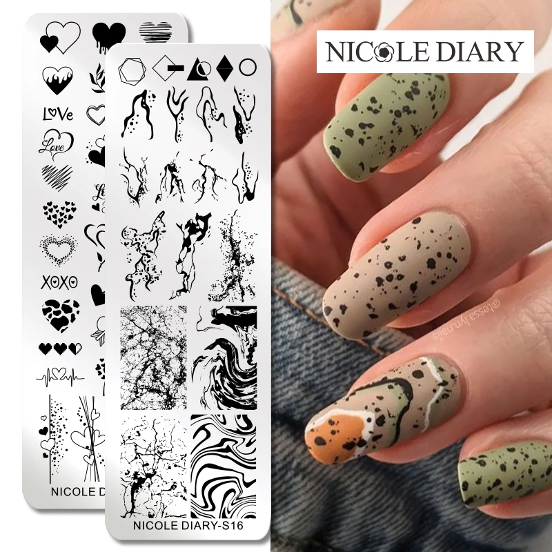Мраморные абстрактные геометрические штамповочные пластины NICOLE DIARY для ногтей трафареты для ногтей с рисунком сердец линий цветов штамповка для ногтей