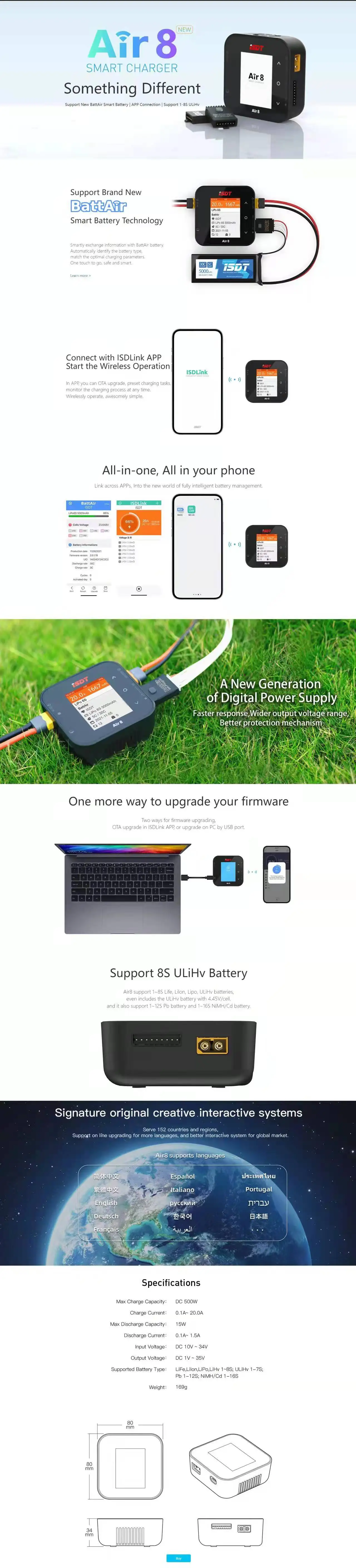 (Новый продукт) смарт-зарядное устройство ISDT Air 8 поддерживает новый BattAir Smart Battery/подключение приложений/Поддержка 1-8 S ULiHv