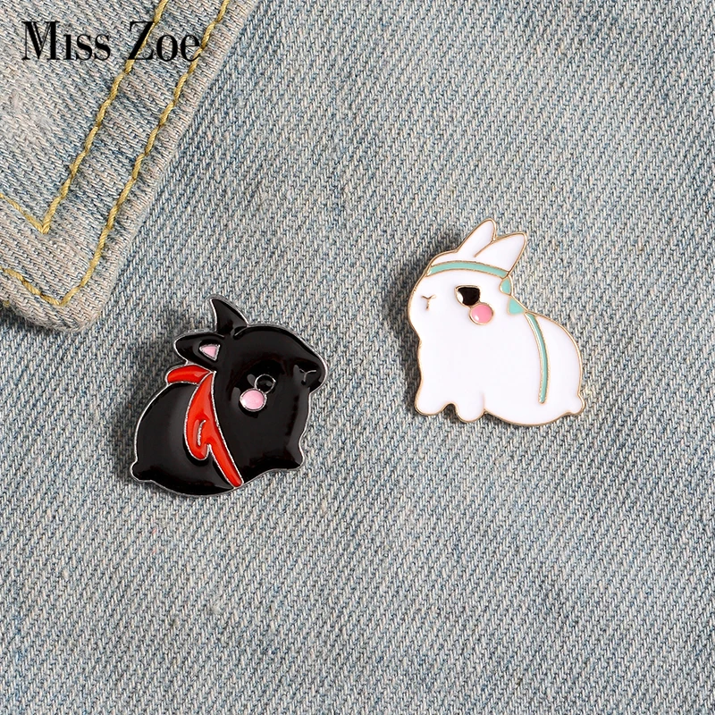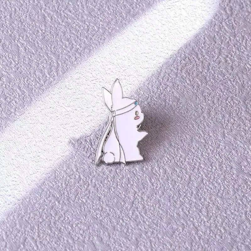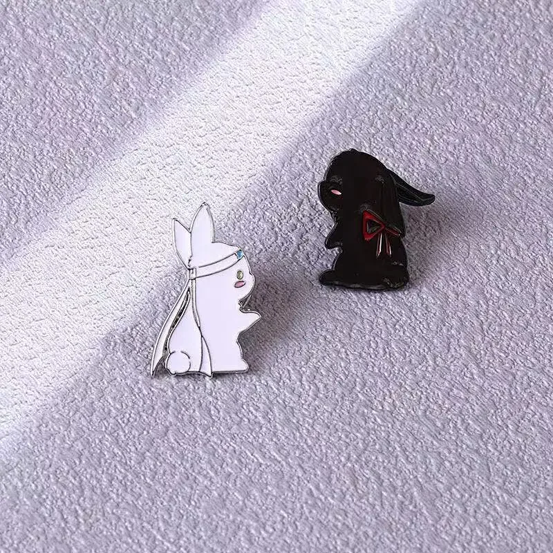 Эмалированная булавка Mo Dao Zu Shi в мультяшном стиле, черно-белая брошь в виде кролика, аксессуар для сумки, одежды, булавки, значки для пуговиц, милые украшения в виде животных