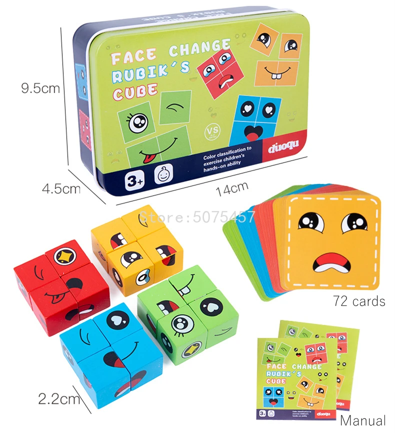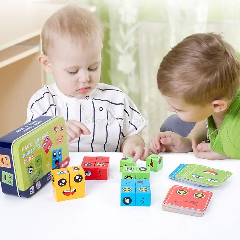Детский конструктор Монтессори с эмоциями, меняющие себя, чувства эмоций, головоломки, развивающая детская карточка, игра с кольцом