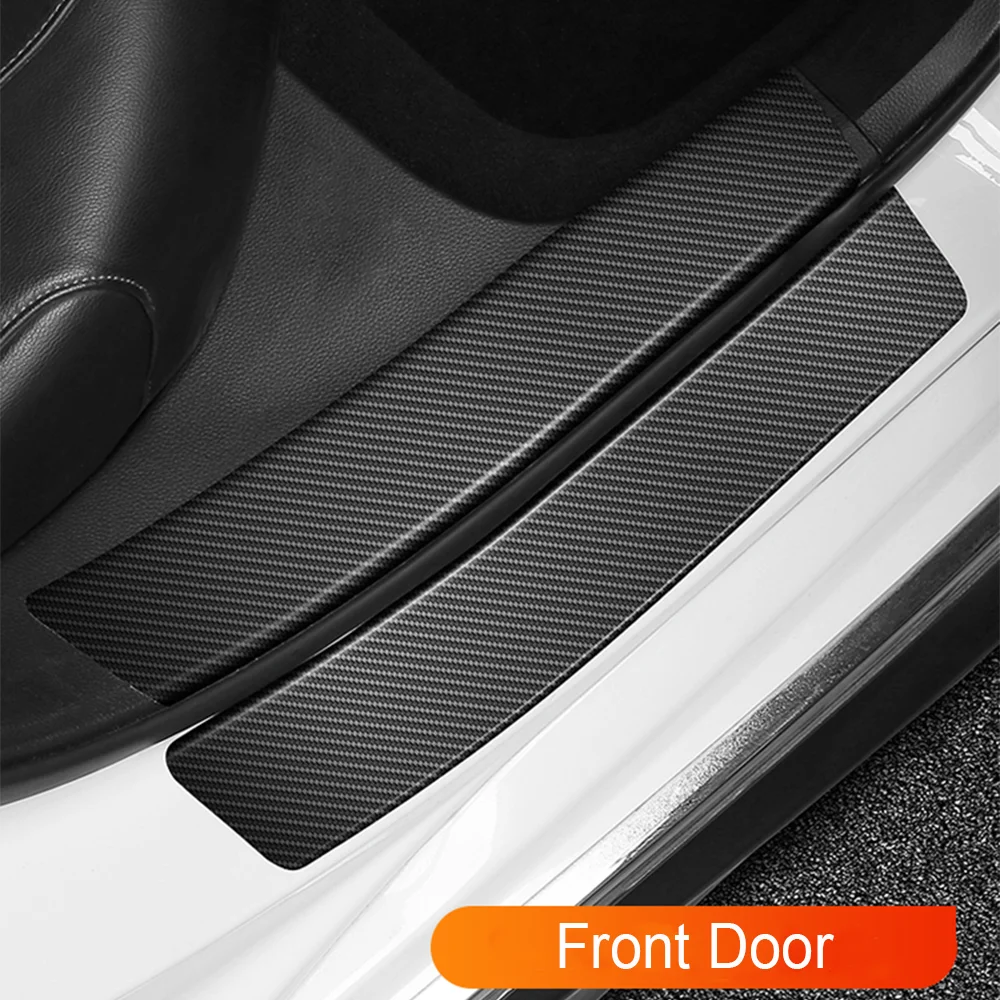 4 шт., защитные наклейки на порог автомобиля, из углеродного волокна