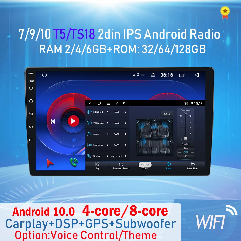 2022 Новый Android 10,0 DSP IPS Автомобильный мультимедийный для универсального Авторадио 6G RAM 128G ROM с AHD Carplay GPS BT wifi