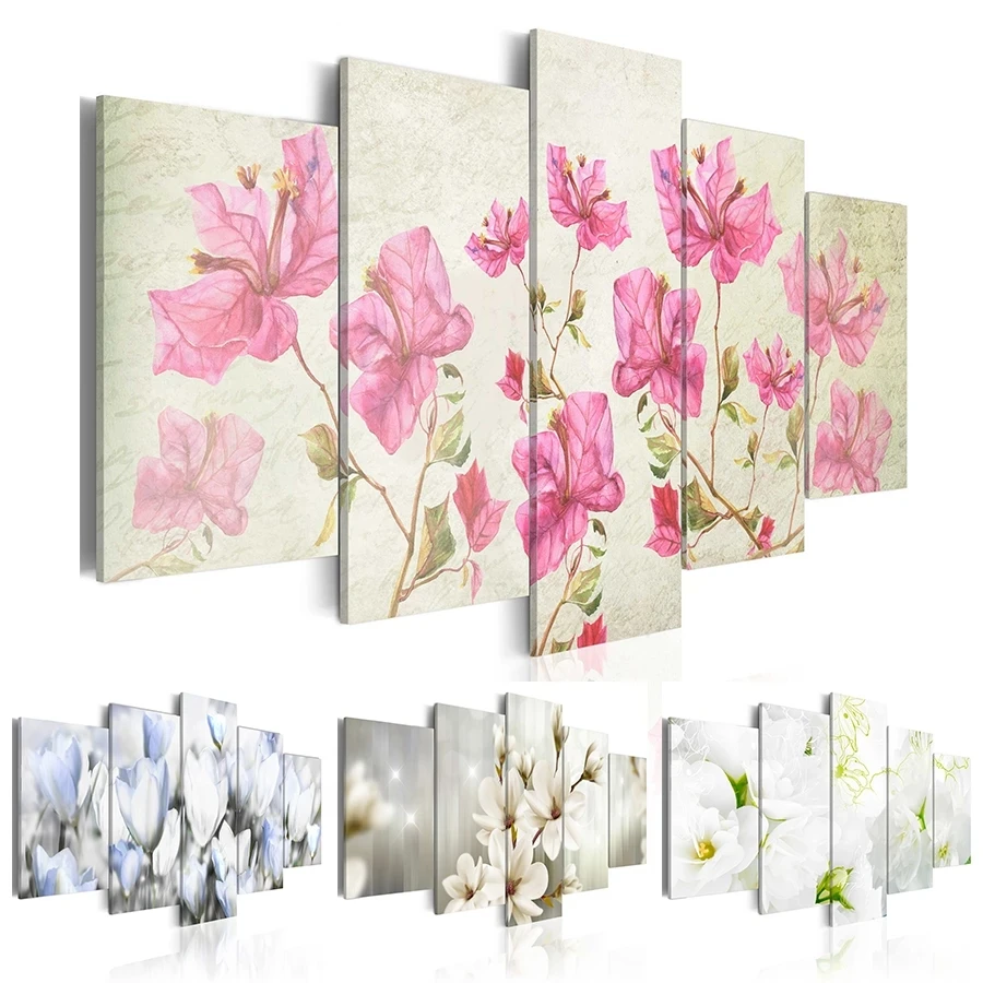 Красивые цветы, растения, холст, картина, 5 шт., плакаты, современный модульный цветок, Настенная картина, Декор для дома, без рамки